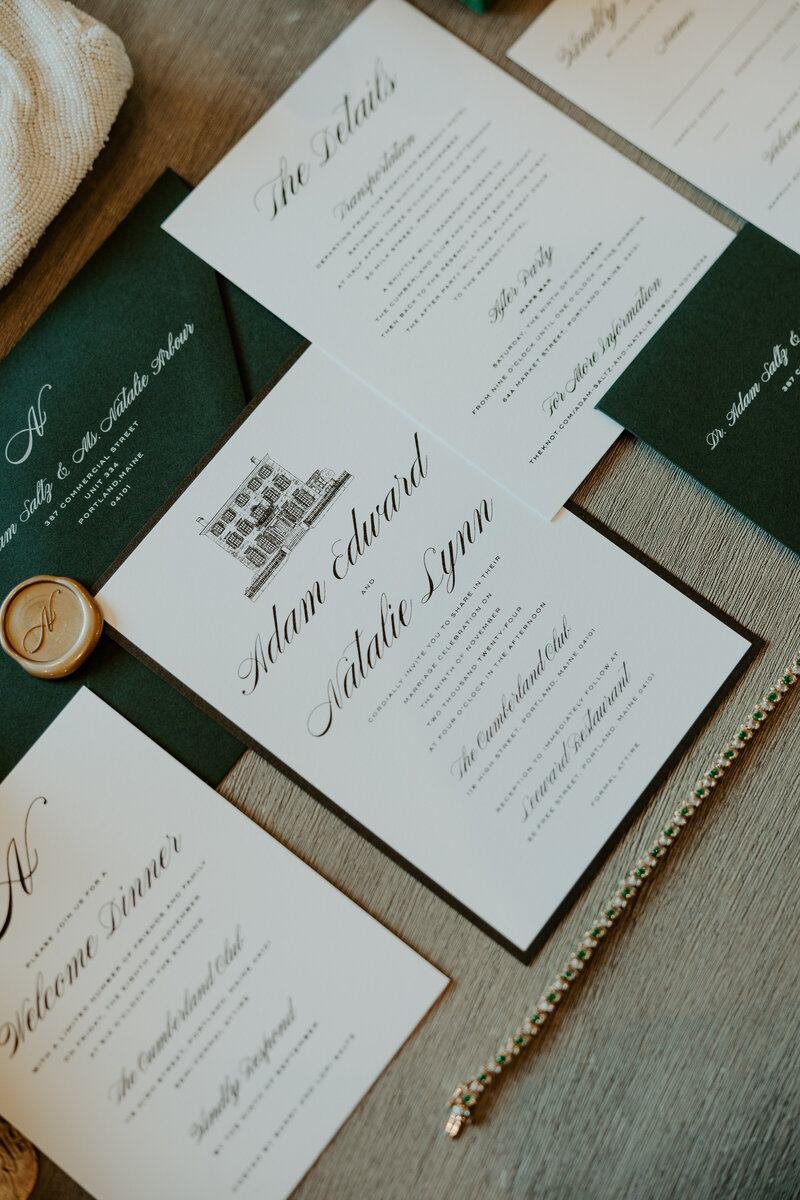 "Clarissa was AMAZING to work with and I cannot recommend her enough! Our wedding suite was really important to me, and it was absolutely beautiful - it captured us as a couple so perfectly. We received so many compliments on our invitations! Clarissa also designed our wedding signage for us. Everything came together beautifully, and I loved that our wedding signage was unique, classic, and complemented the overall aesthetic of the wedding."